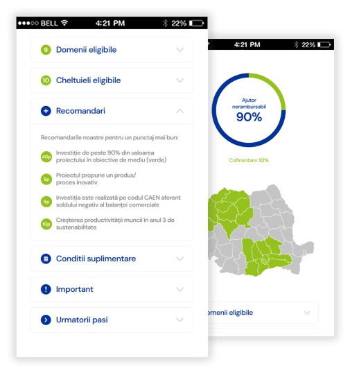Pe baza firmelor înscrise de tine, noi îți generăm Raportul de eligibilitate, pentru ca tu să găseşti uşor finanțarea potrivită.
